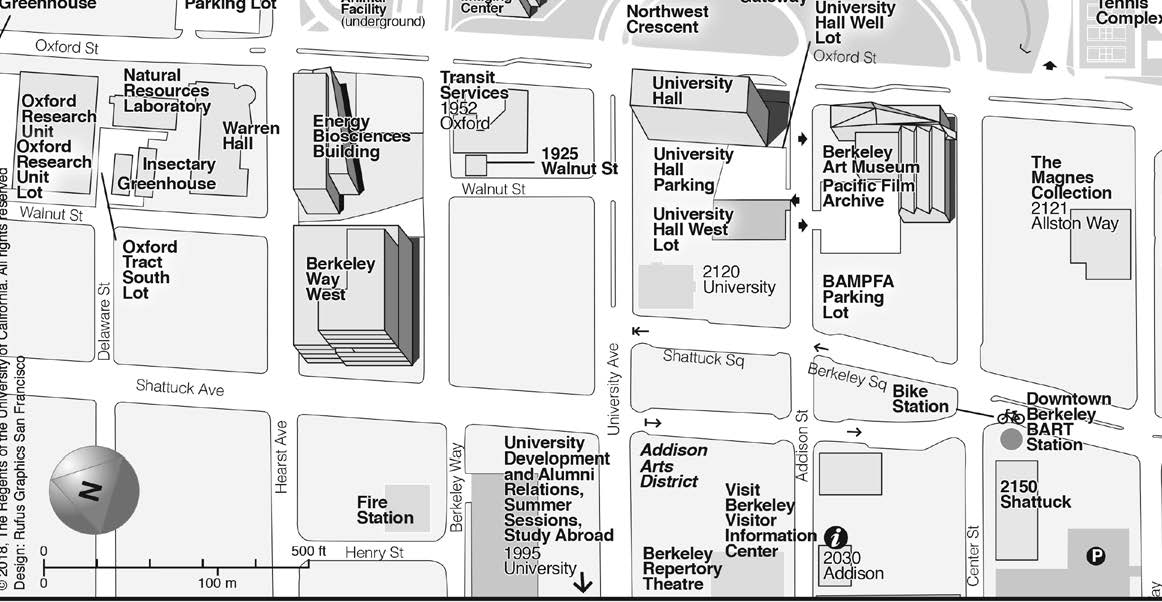 Take I-80 West and get off at the University Avenue exit. Go east on University Avenue until it ends at the campus (one block past Shattuck Avenue) at Oxford Street.
